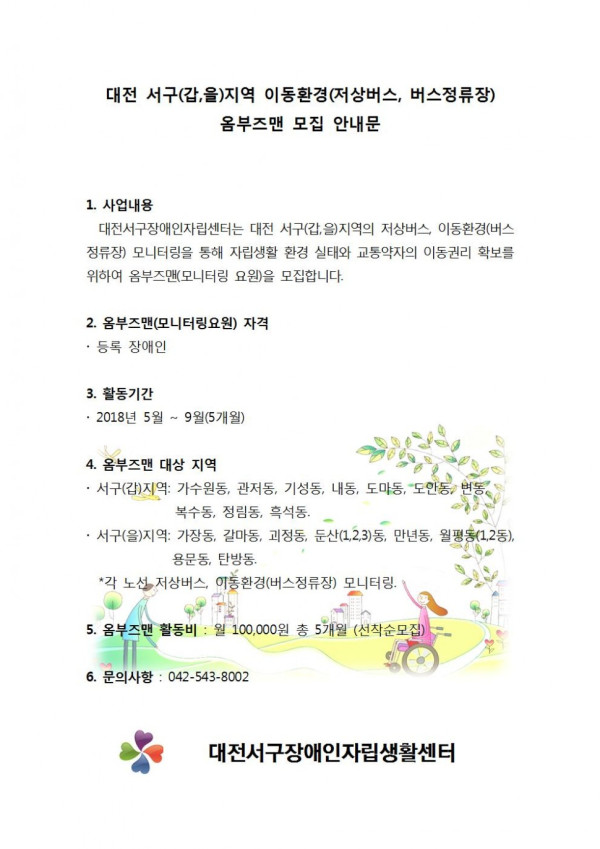대전서구(갑,을)지역 이동환경 옴부즈맨 모집 안내