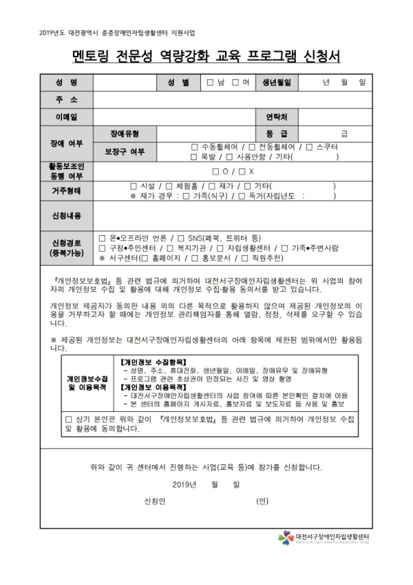 2019년 멘토 역량강화 교육 참여자 모집 안내문